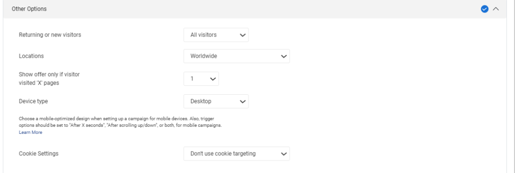| Smart Targeting & Behavior Triggers | Features like scroll depth, exit intent, inactivity, device type, URL, and UTM targeting help show popups at the right moment to the right audience. |