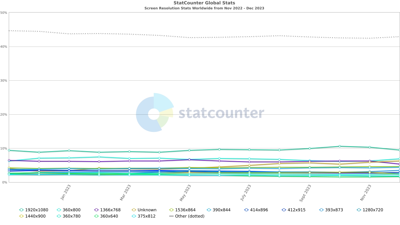 In fact, almost 10% of the population have a screen resolution of 1920×1080, meaning that almost 10% of the screen users look at a full HD (FHD) screen.