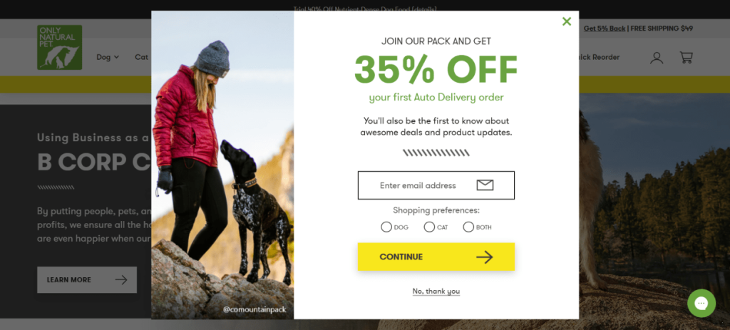 Their popups are visually bold by design because they need to compete in a content-rich site where visitors tend to browse deeply before buying.